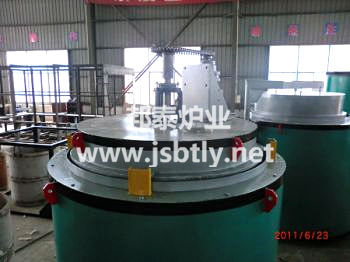 爐蓋:本爐有兩只爐蓋,爐蓋鋼結(jié)構(gòu)由型鋼及鋼板焊接成型,纖維毯模塊做保溫層,爐蓋的啟閉采用手動起吊方式,采用車間原有行車對爐蓋進(jìn)行起吊,有爐蓋的兩側(cè)安裝有供爐蓋歸位的導(dǎo)向裝置。 爐膽:本爐有兩只爐膽,爐膽采用10mmA3鋼板經(jīng)過滲鋁后焊接而成,兩只爐膽交替使用,既節(jié)約了能源又增加了生產(chǎn)效率。