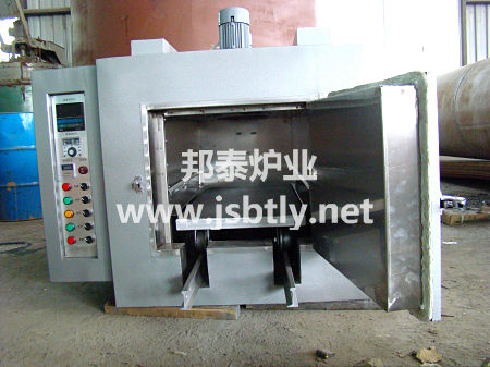 2、工作室配有小車一輛,小車進出設(shè)置手動式,小車上面可配放料框或者料盤供工件烘烤,工作室底部采用槽鋼加固制作軌道供小車進出。