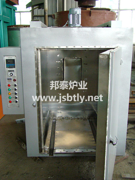 2、工作室配有小車一輛,小車進(jìn)出設(shè)置手動式,小車上面可配放料框或者料盤供工件烘烤,工作室底部采用槽鋼加固制作軌道供小車進(jìn)出。