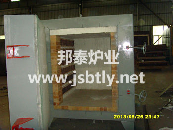 制作方法是將纖維毯壓縮成整體纖維爐墻,并用描固件固定在爐體上,既堅固耐用又美觀。
