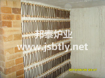 本爐選用槽型GDC硅碳棒作為本爐加熱元件,分布在爐膛的兩側,接線端放置在爐膛的頂部。
