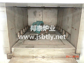 該設(shè)備為周期式熱處理設(shè)備,帶有熱風(fēng)循環(huán)系統(tǒng),最高使用溫度650℃,主要用于各種金屬材料進行回火、退火和各種鑄件的回火處理,與控制系統(tǒng)配合使用,可以自動控制設(shè)備的加熱溫度和臺車進出。