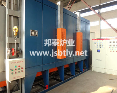 該設(shè)備為周期式熱處理設(shè)備,帶有熱風(fēng)循環(huán)系統(tǒng),最高使用溫度650℃,主要用于各種金屬材料進(jìn)行回火、退火和各種鑄件的回火處理,與控制系統(tǒng)配合使用,可以自動控制設(shè)備的加熱溫度和臺車進(jìn)出。
