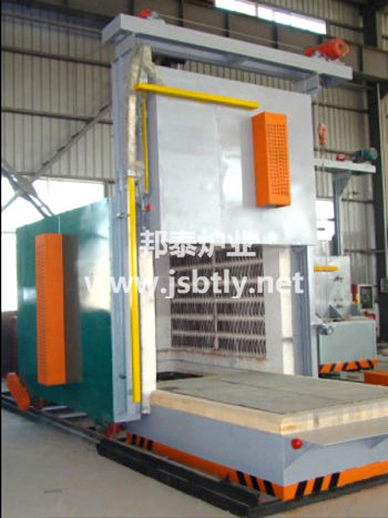 爐體開出,爐門升降均為電動控制,配有行程開關(guān),可防止慣性撞擊爐體,并且連鎖控制,打開爐門后,自動切斷加熱元件電源,爐門上升到指定位置后才恢復(fù)臺車行走機構(gòu)電源。爐門關(guān)閉后,自動切斷臺車行走機構(gòu)電源,同時恢復(fù)加熱元件電源。